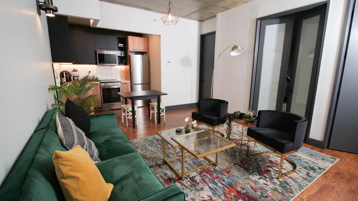 Come by our space & have your next content shoot, meeting, or event at our brand new Luxurious Brooklyn Production Studio with additional amenities! We have a luxurious and spacious open floor plan that can be utilized to produce a wide variety of content ranging from high fashion, beauty, interviews, music videos, films, & more. You are welcome to rearrange furniture and bring your own props & set design. The options are essentially limitless. Located in the creative heart of Downtown Bushwick in Brooklyn, your booking includes the entire living area space, a brand new kitchen, bathroom and additional amenities including a Gym, Movie Theatre, and Lounge Room.